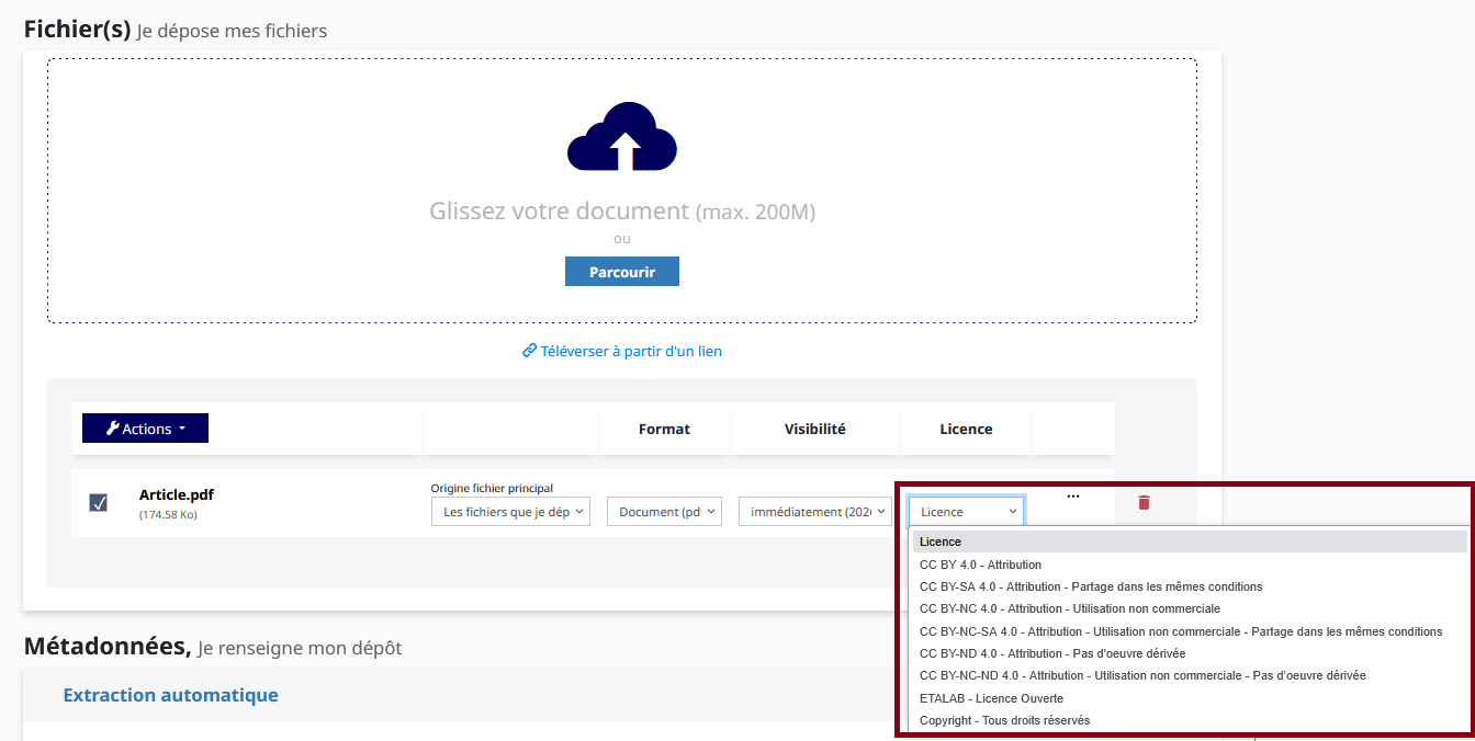 Version française Ouverture des publications Le portail HAL Paris Nanterre Choisir sa licence dans HAL